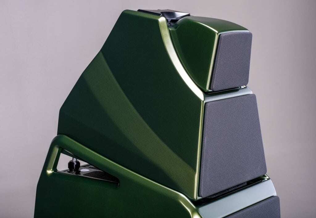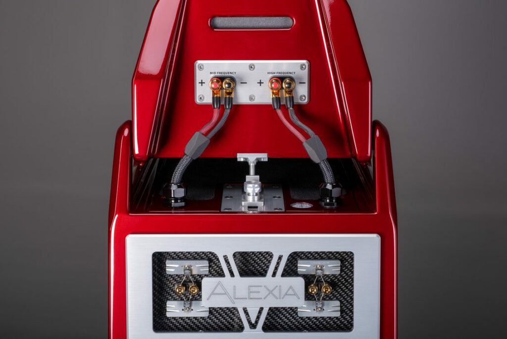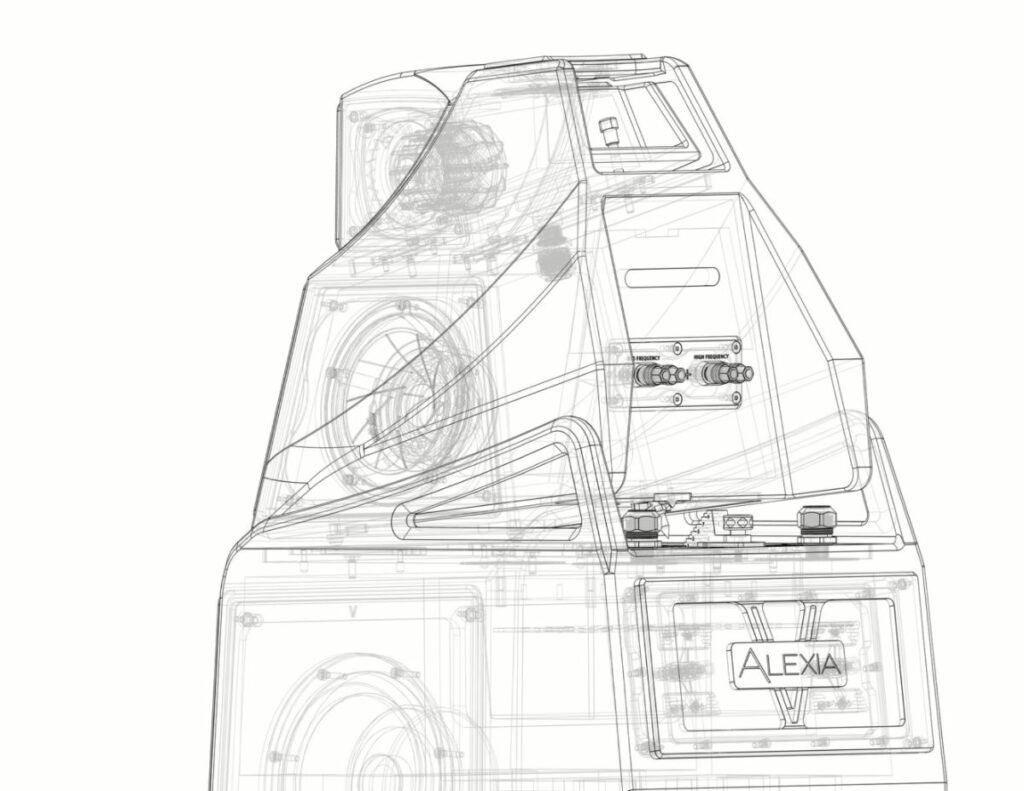 Sculpted to blend with the new form and increase structural integrity, the midrange enclosure alignment bridge better reinforces the module’s external frame and is a more massive construction using a combination of X-Material and aluminum. A delicate balance is formed within the lines of Alexia V.