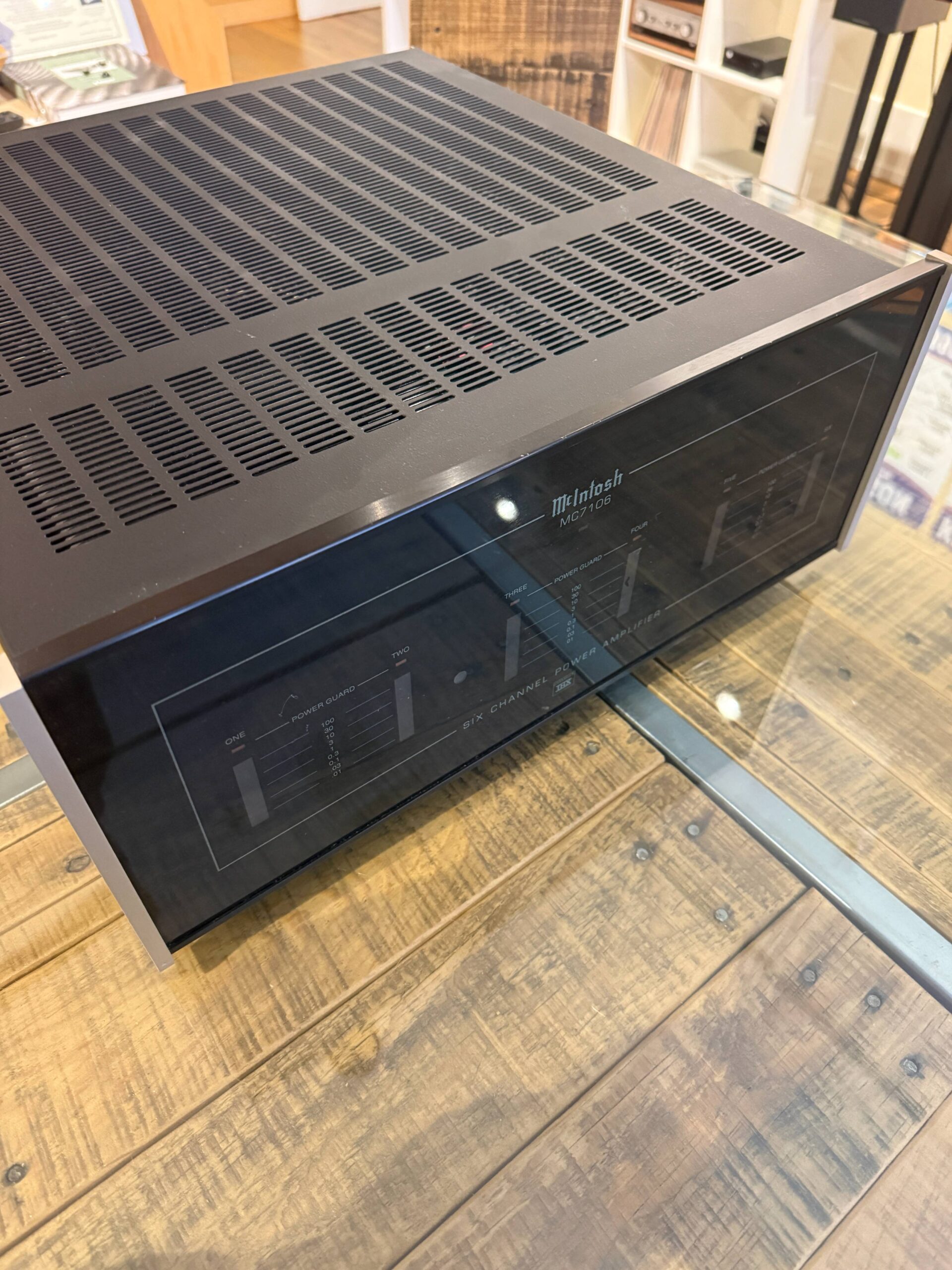 This McIntosh MC7106 6-channel power amplifier is in good working condition, rated 7/10 with cosmetic wear consistent with age. The unit has been tested and performs as intended. Original box and accessories are not included.